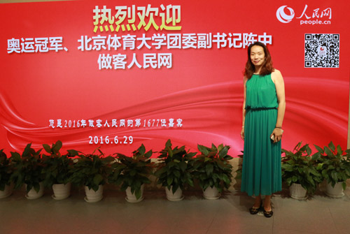 奧運(yùn)冠軍、北京體育大學(xué)團(tuán)委副書記陳中做客人民網(wǎng)強(qiáng)國(guó)論壇(代睿 攝)